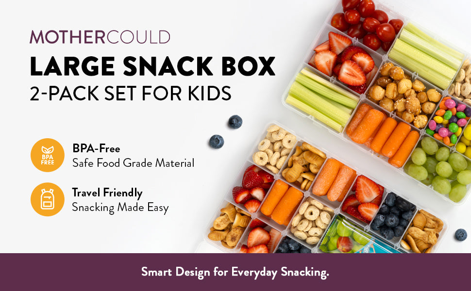Meet the LARGE Mothercould Snack Box Set—a durable, BPA-free, dishwasher-safe solution for organized snacking. With 18 adjustable compartments and 100 dissolvable labels, it's perfect for school, travel, crafts, and more. Keep food fresh, mess-free, and easy to track—the ultimate parenting hack on the go!