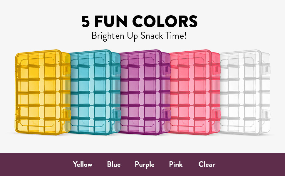Available in five vibrant colors to add fun and variety to snack time, these containers are both practical and stylish, making mealtime more enjoyable for kids and adults alike.